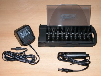 Auf den ersten Blick erinnert es an ein normales Ladegerät, in dem bis zu zehn AA oder AAA-Batterien geladen werden können. Im Lieferumfang befindet sich neben einem Ladegerät für die Steckdose auch der 12Volt-Anschluß für Auto oder Boot. Alles in allem also eine flexible Lösung, die am meisten verwendeten Akkus zuhause und unterwegs zu laden. Was aber hat das mit Solarenergie zu tun?!