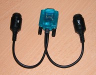 So here we are in thinking that a Pocket PC could handle that! Han-d-solutions from Canada have developed a product called MPort that enables a Pocket PC to play MIDI files and control a connected MIDI device. The set consists of two cables that are connected via a standard SubD-plug. The charme of this solution: One part (left in the photo), the part containing the MIDI In and -Out, can be connected to any Pocket PC sync cable using an nullmodem adaptor, but it can also be connected to the serial port of any PC (more to that later). The second part (right) is used to directly connect to an iPAQ.