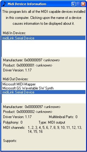 I neither need a MIDI Port nor sound card in my PC to do that, just a standard serial port. E.g. every notebook may be used for that, too. Simply choose MPort (midiLink Serial Device) for playback, and you can use it to play MID files on your keyboard or use the MIDI In to record from your keyboard.