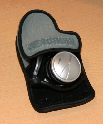 The design of the OBH-0100 is close to the Koss KSC-55, it´s foldable to a little package, unfolded a fully zite headphone worn around the neck. The speakers are very comfortable and tight, which has the advantage of being isolated from the outside world when listening to music. A little softcase is included that can carry the folded OBH-0100 for transport. Due to the dependance on the USB adapter (see below) it´s quite unlikely that this will be used very often (only with the OBH used as standalone MP3-player).