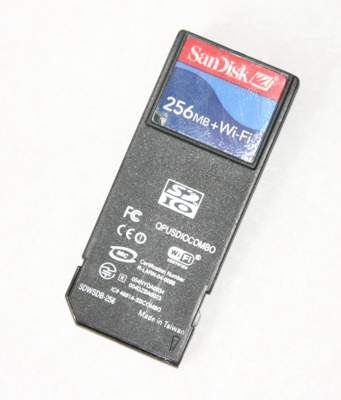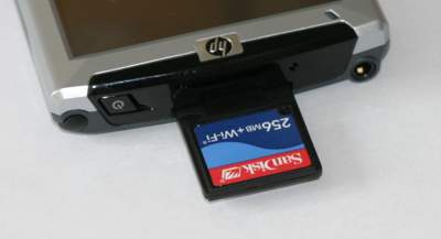 Nach der normalen SD-WLAN-Karte hat Sandisk nun der tatsache rechnung getragen, dass das Blockieren des für viele PDAs einzigen Erweiterungsslots potentiell Probleme mit zu wenig Speicher hervorruft, Rechnun getragen. Die SanDisk 256MB + Wi-Fi SD Card ist eine Kombination aus der bereits bekannten WLAN-Karte und einer 256MB Sepicherkarte.